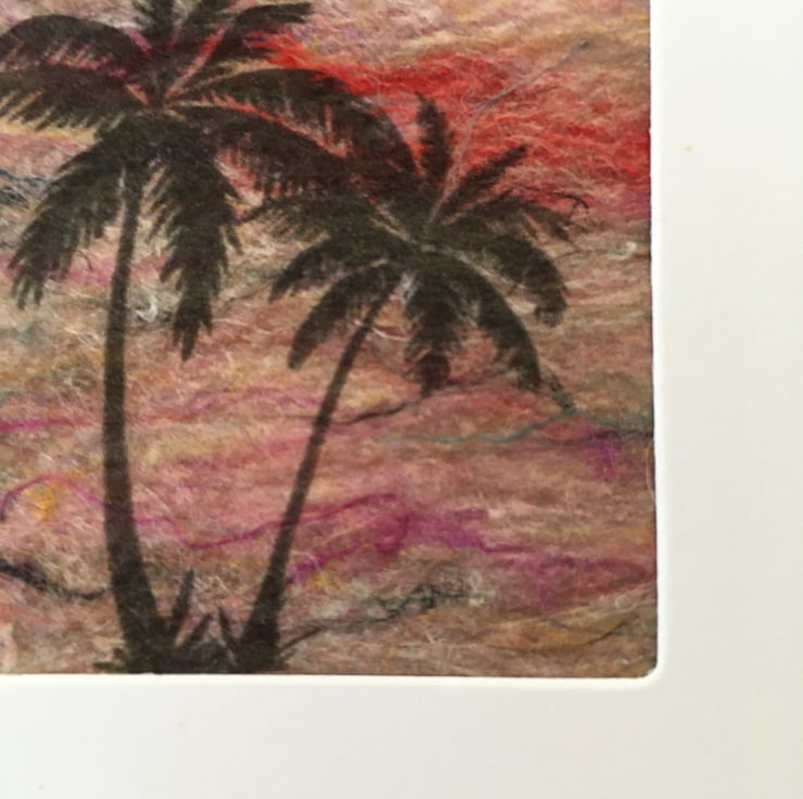 Seconds sunday - Greeting card, print on hand made silk paper, palm trees