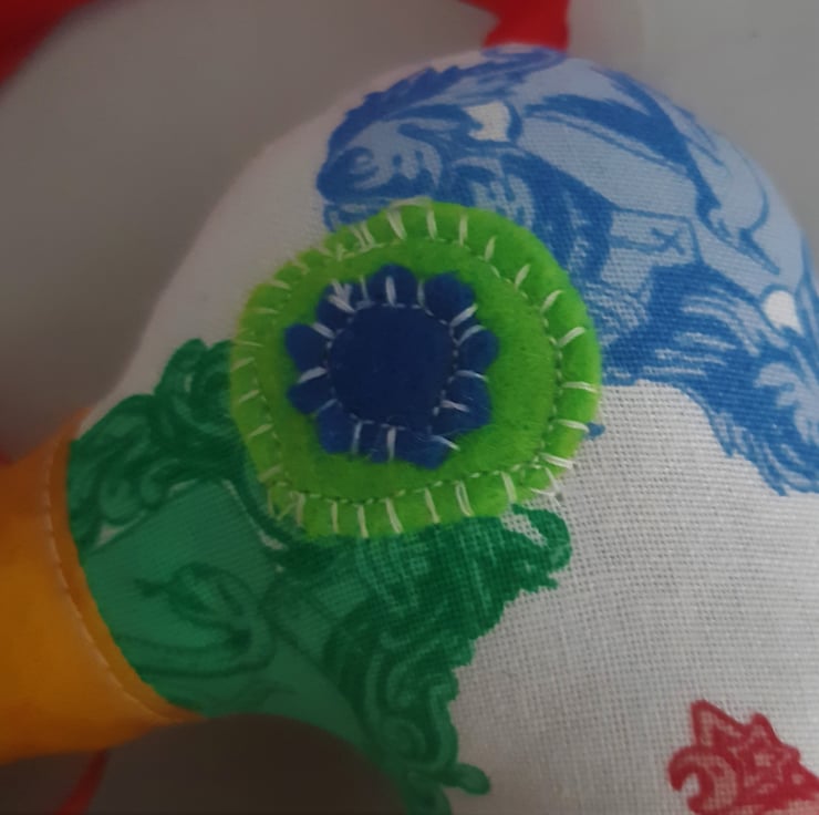 This was inspired by a gift that Givie made for a new mum - we love the combination of the beautiful fabric and dangly legs. Using Givie's embrodiery machine we realised that we could personalise this in any way.