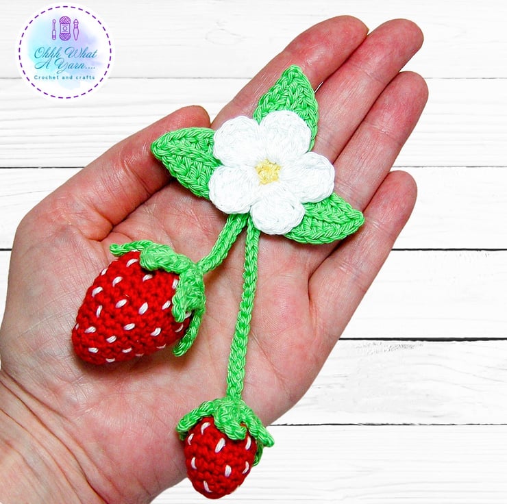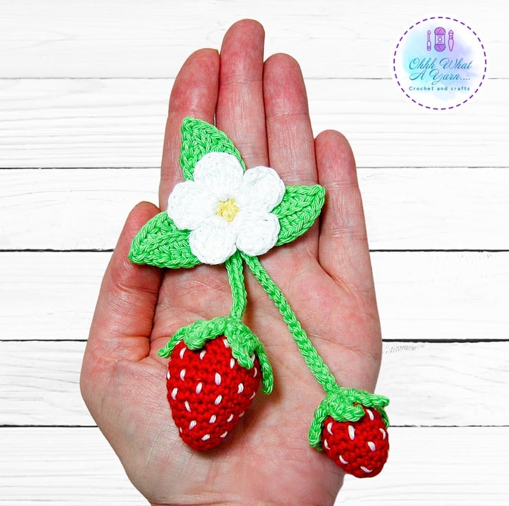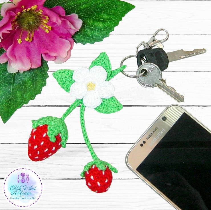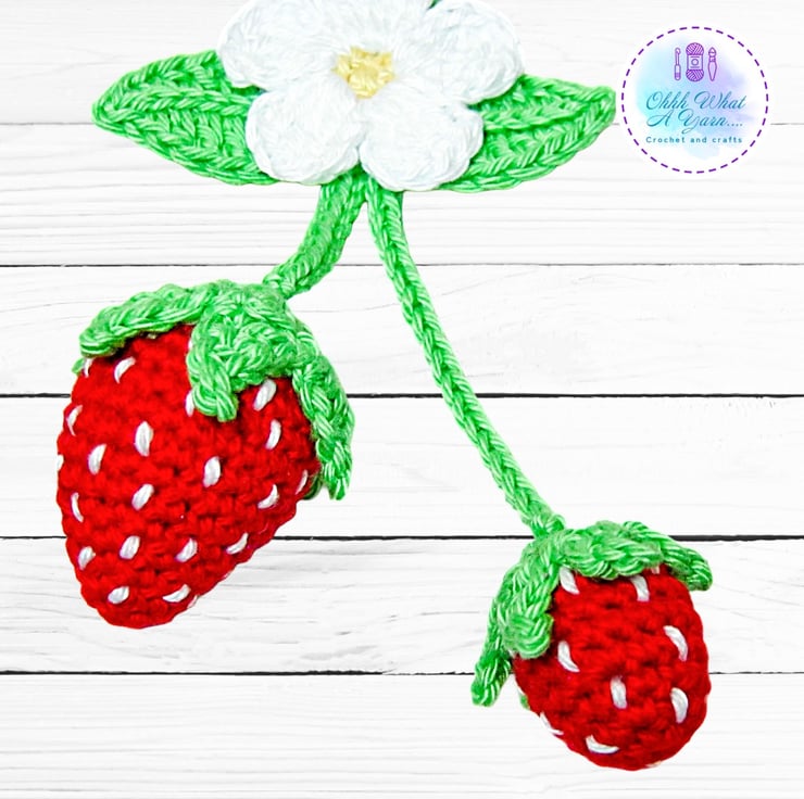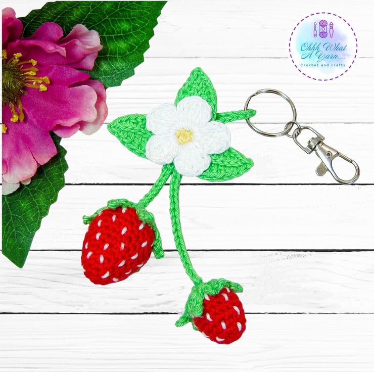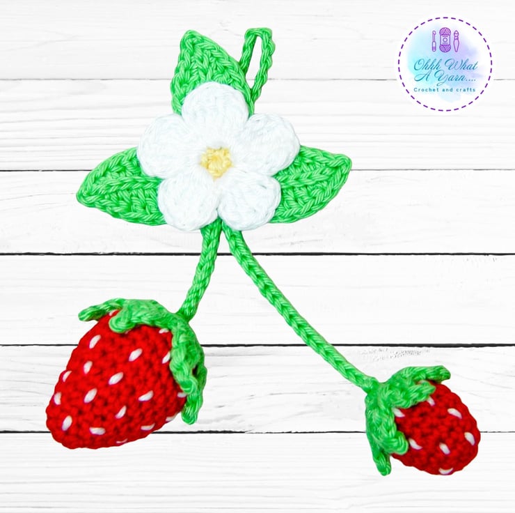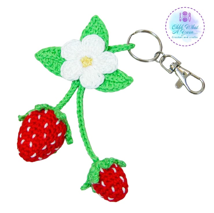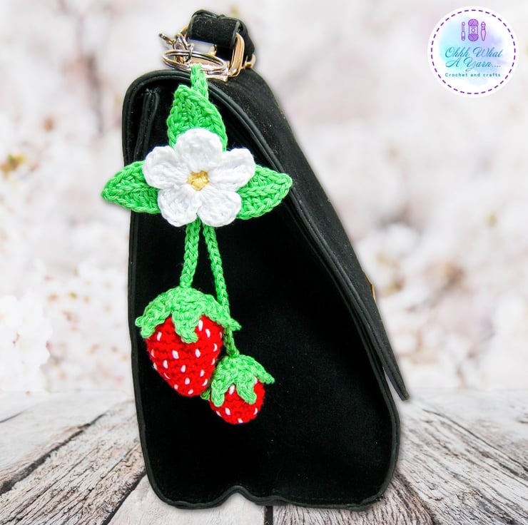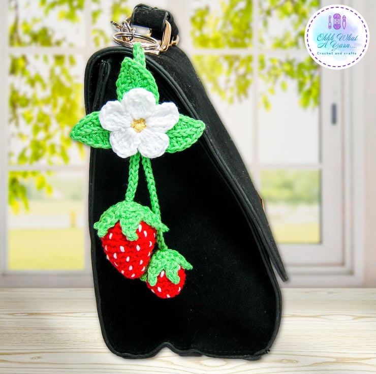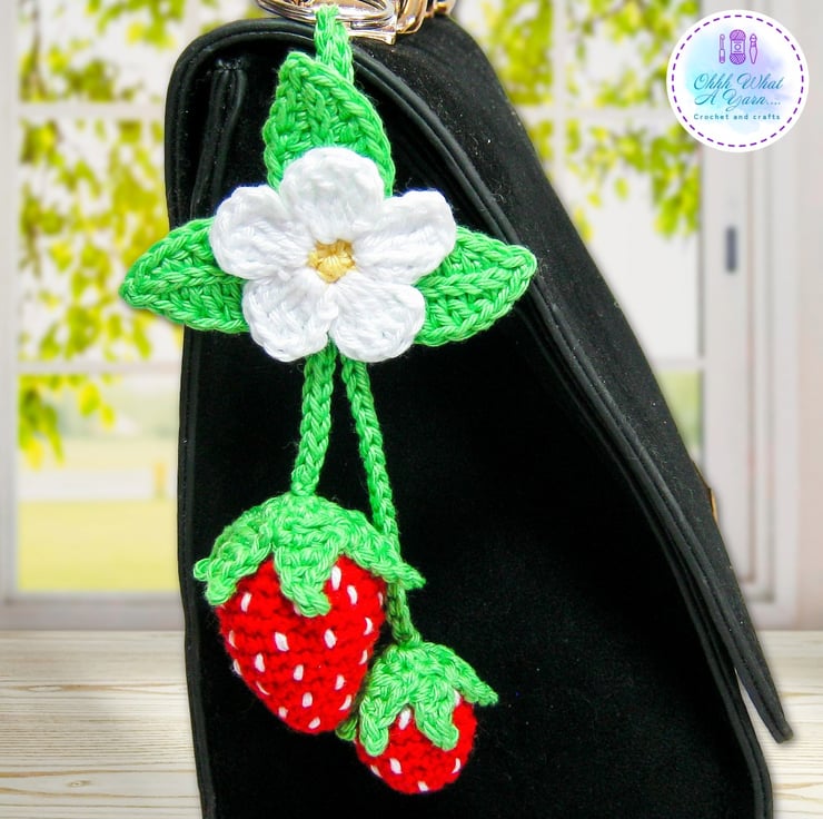 The summer strawberry bag charm has been crocheted using 100% cotton yarns which give it a lovely sheen and stitch definition.