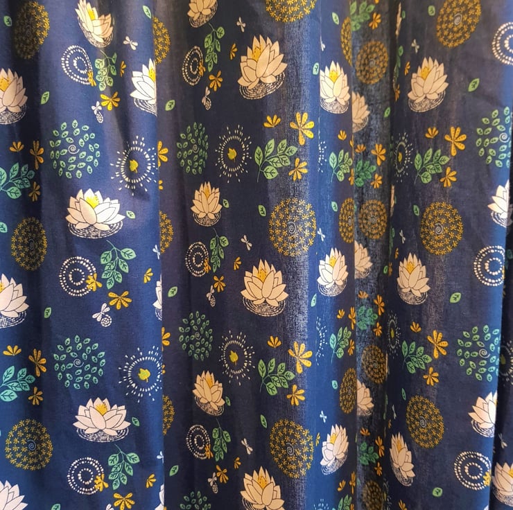 Beautiful oriental inspired Water Lily's on blue ... who need the Orient Express when you can just jump in the shower & be transported to a world of elegance, charm & tranquil reflection; no passport required!!