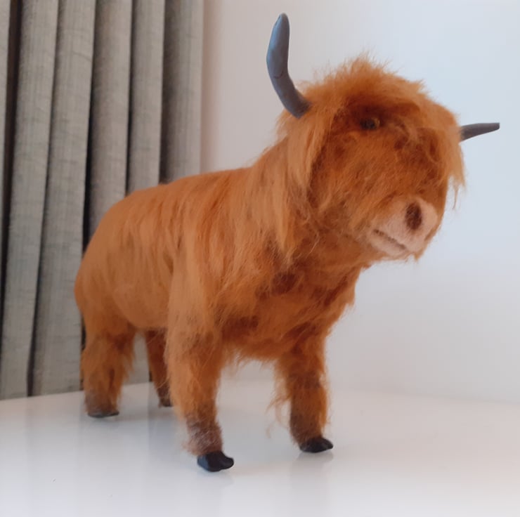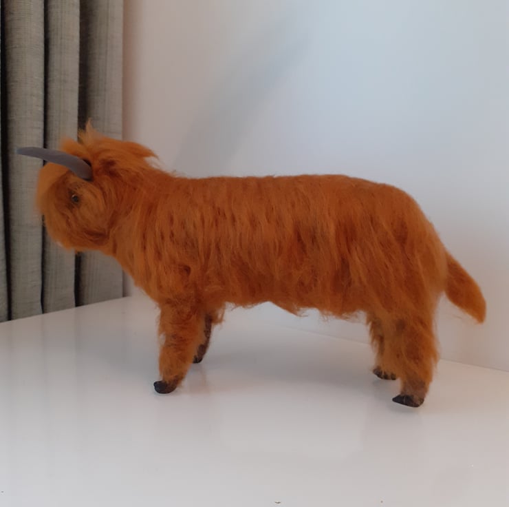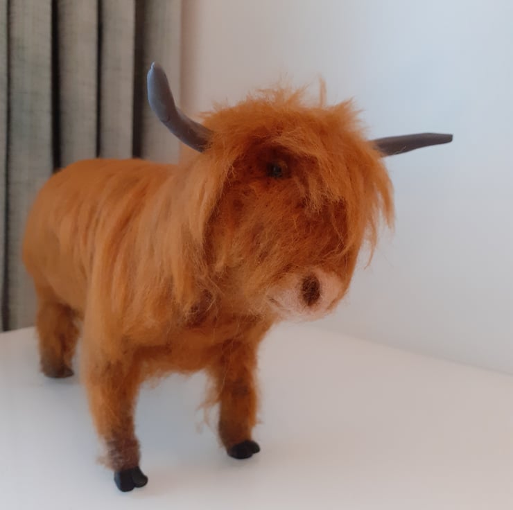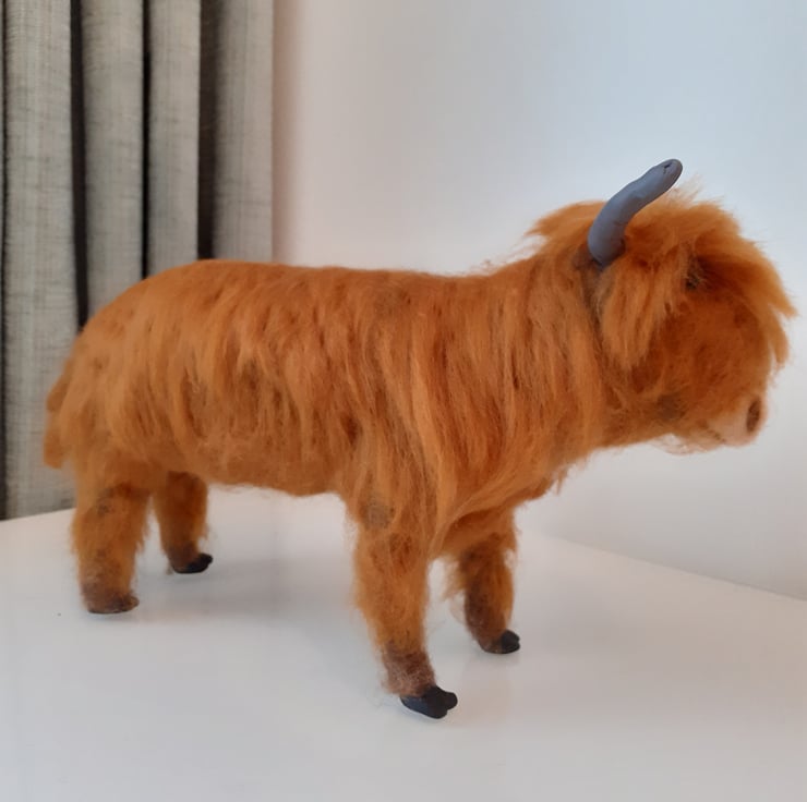 All wool,needle felted on a wire armature which allows you to pose him as desired.