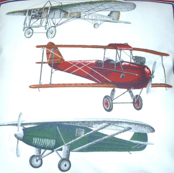 Planes of the early 1900s cushion with three different Bi-planes on a cream background.
