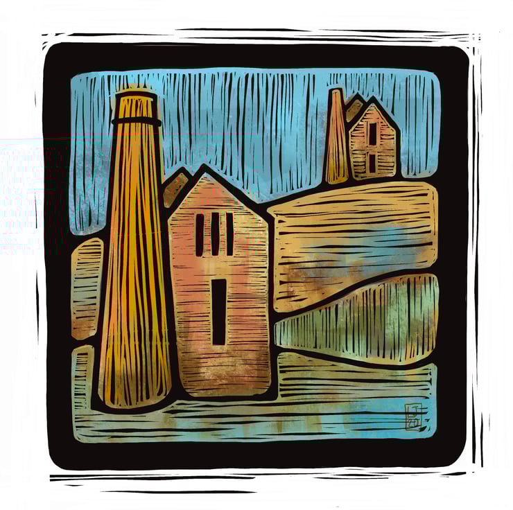 This print is from my “digital Lino”series of Cornish tin mine and landscape series. Inspired by the disused tin mines and engine houses that surround my home here in Cornwall.