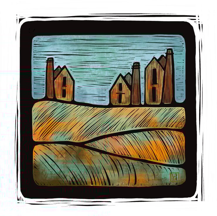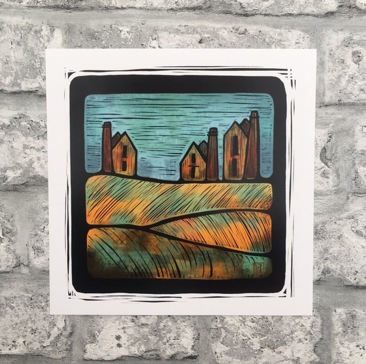 This print is from my “digital Lino”series of Cornish tin mine and landscape series. Inspired by the disused tin mines and engine houses that surround my home here in Cornwall.