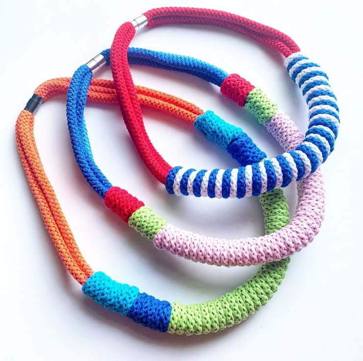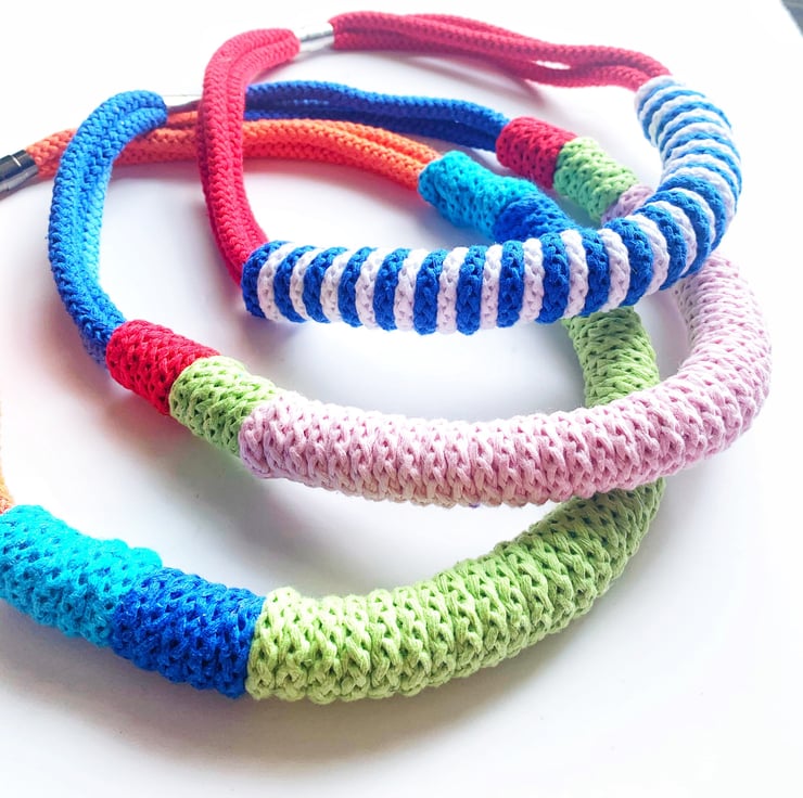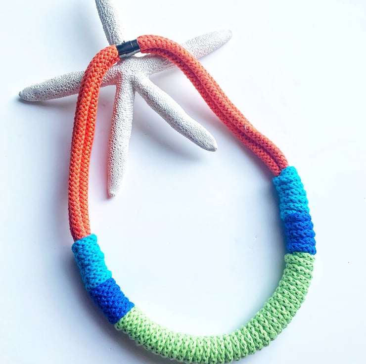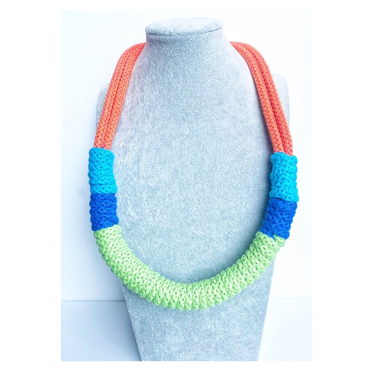 Beautiful handmade cotton rope necklace, made with crocheting technique.
