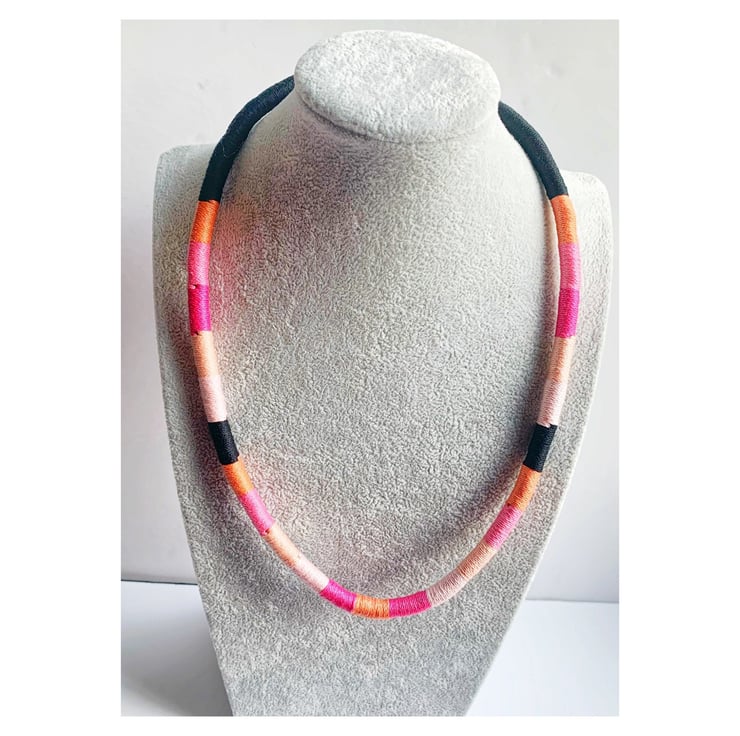 Black and fuchsia cotton rope necklace, Wrapped Cotton Necklace, Christmas Gift