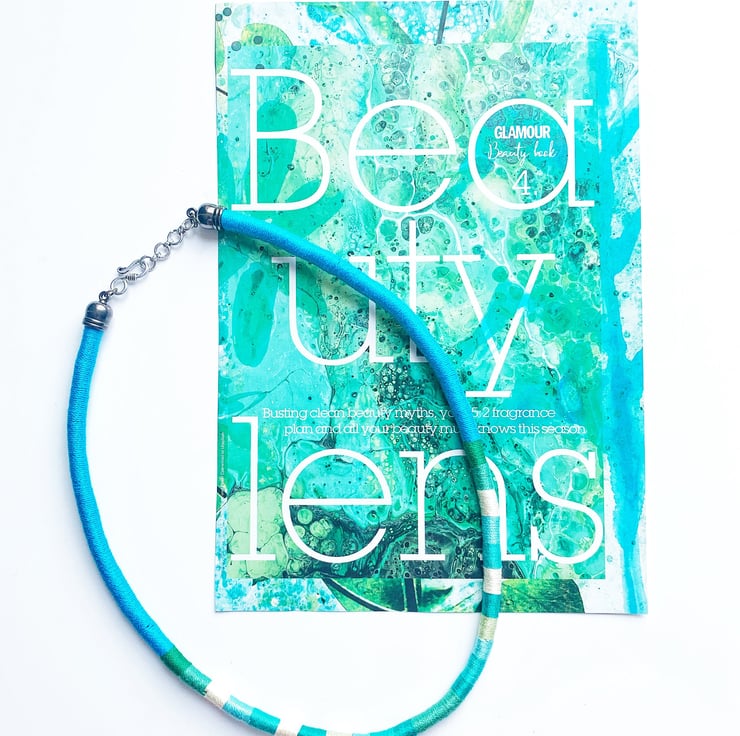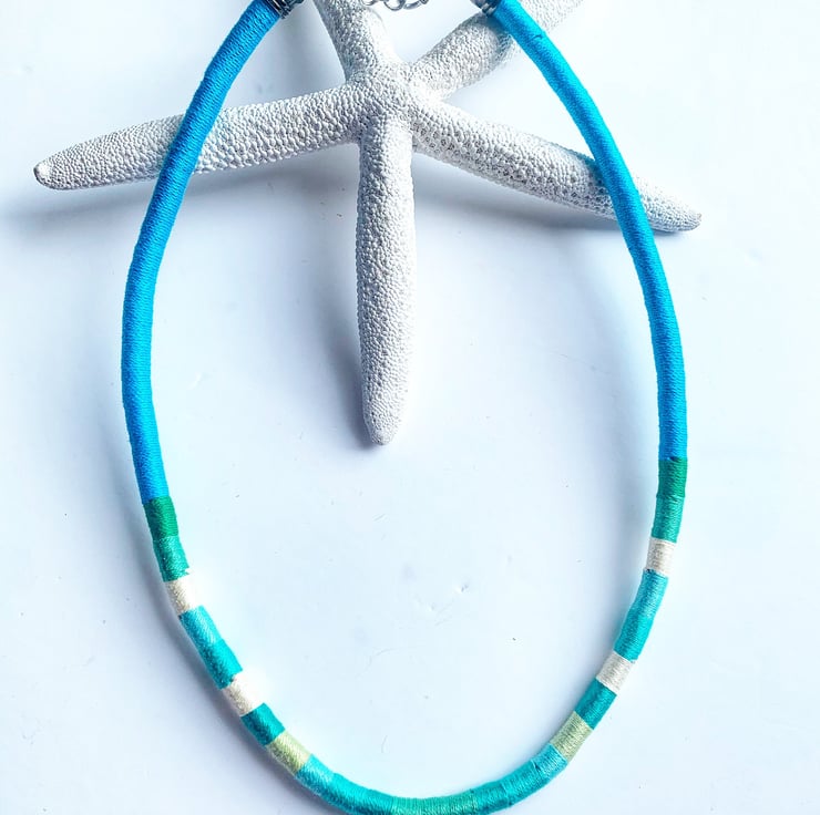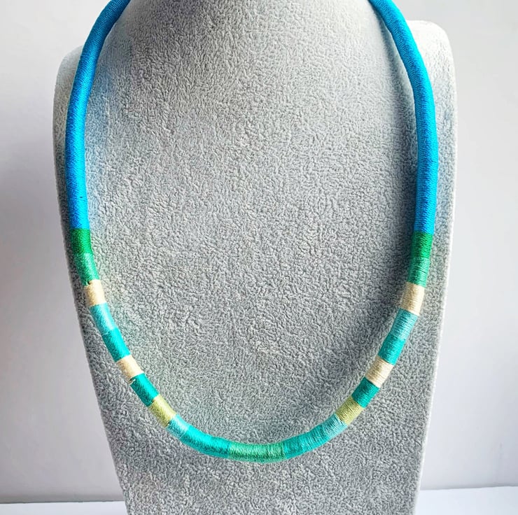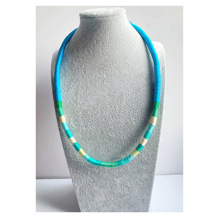 Statement Sea Green rope necklace, Wrapped Cotton Necklace, Cotton Cord gift ide