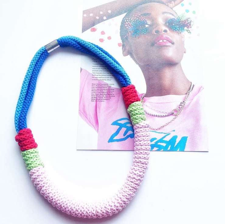 Baby pink and blue Knotted Rope Statement Necklace, Chunky Statement necklace