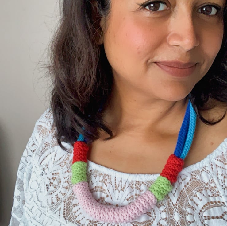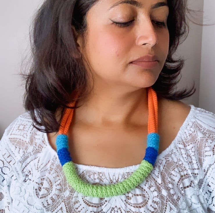 Beautiful handmade cotton rope necklace, made with crocheting technique.