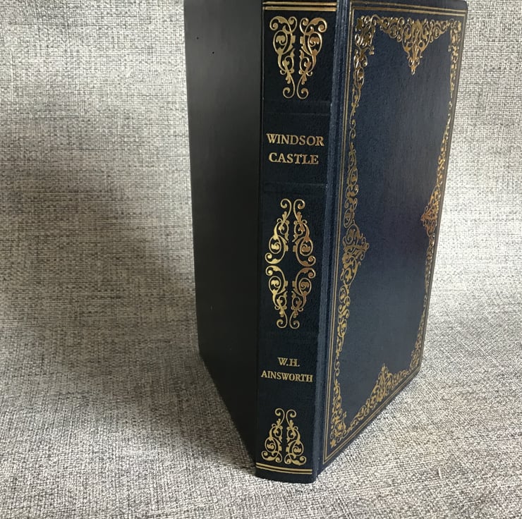 The outside of the book is navy with gold and the book is Windsor Castle by W H Ainsworth.