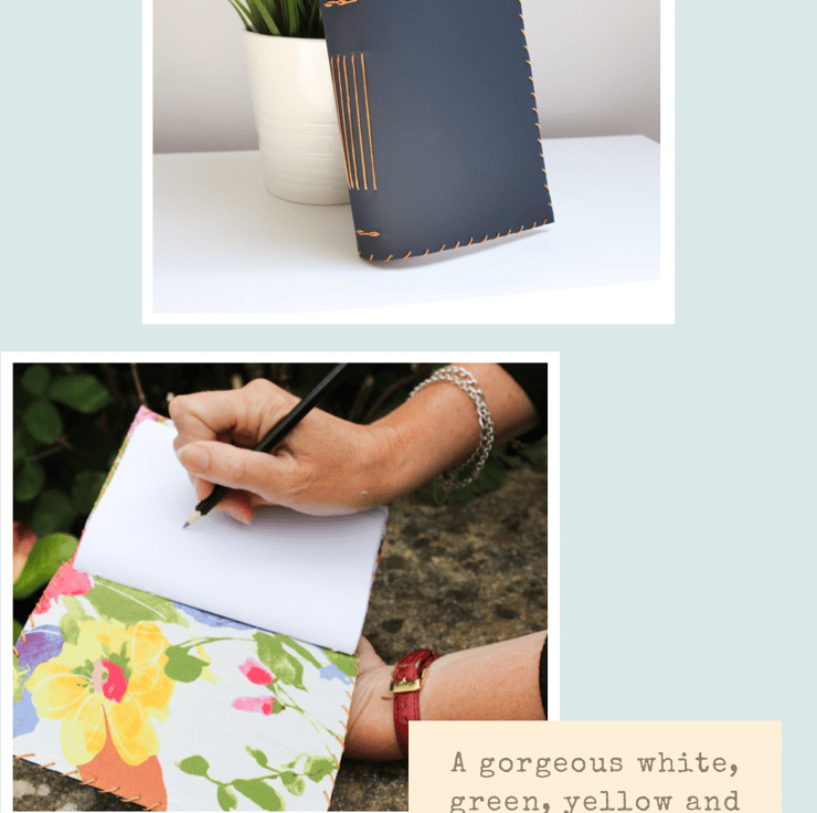 All lined with a gorgeous floral (or non floral) fabric and filled with plain paper, lined paper, recycled paper or watercolour paper.