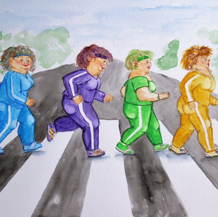 Abby Street is inspired by the Beatles walking over this same zebra-crossing. I just use four ladies exercising along this famous road.