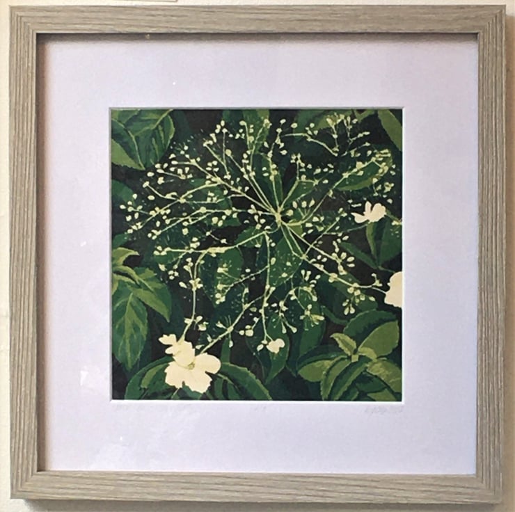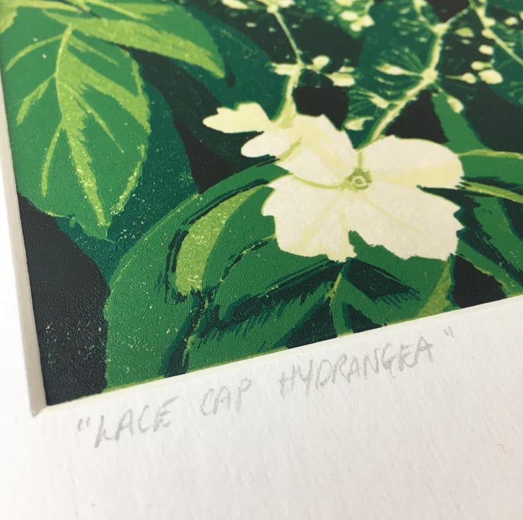 individual beauty of each original artwork. "Lace Cap Hydrangea" is printed onto Bunkoshi 70gsm printmaking paper from the Awagami factory in Japan.