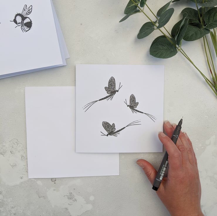 I love being in the garden with nature, and insects play a very important part in that. These prints are all inspired by insects and nature walks we’ve been on during lockdown. I loved them so much that I decided to have them made in to cards, with variations of the original prints. So now you can send them on to bring joy to others.