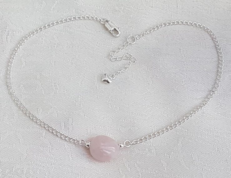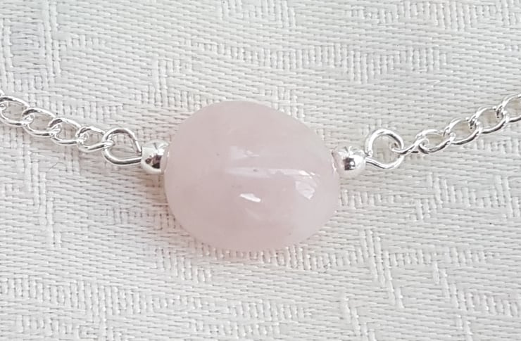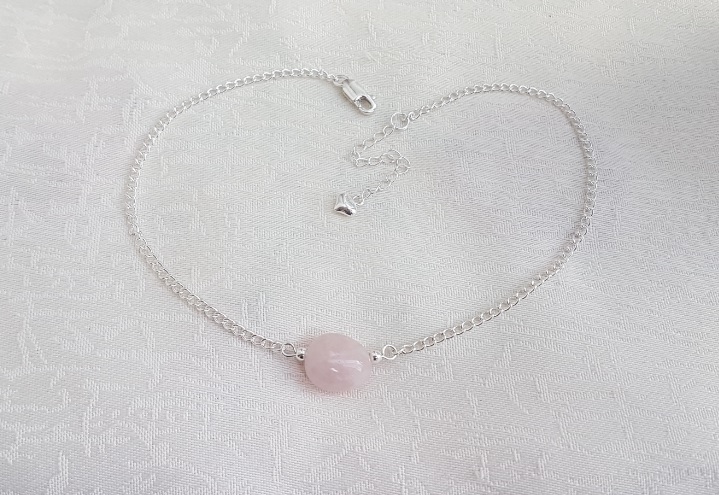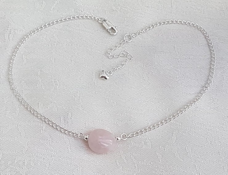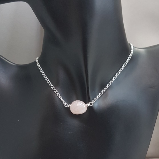 Gorgeous Rose Quartz Bead Choker Necklace. A lovely Sterling Silver chain with a beautiful Rose Quartz bead make up this fabulous choker necklace. Gorgeous for those who love Rose Quartz, Pink tones or just beautiful, unusual jewellery.
