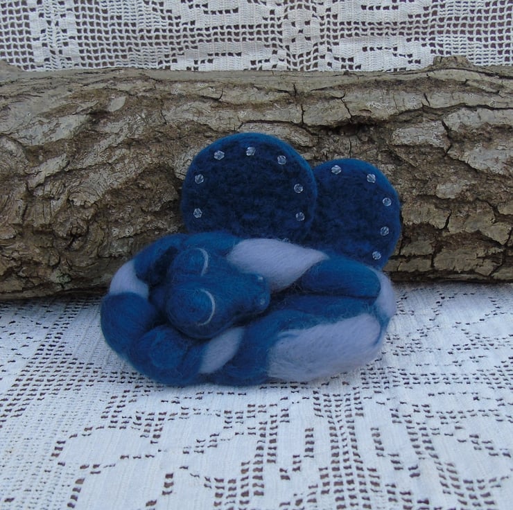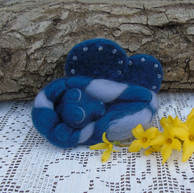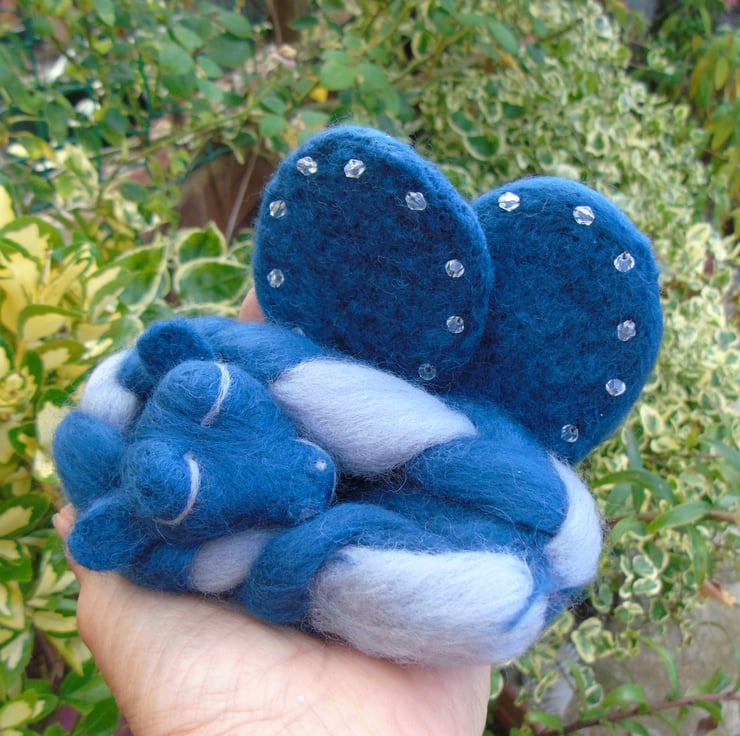 Needle felting is a wonderful medium to create my mythical creatures. They can be all shapes and colours. I can let my imagination run wild. I chose the blue and grey to represent a baby dragon of the sea. A dark wintry sea.