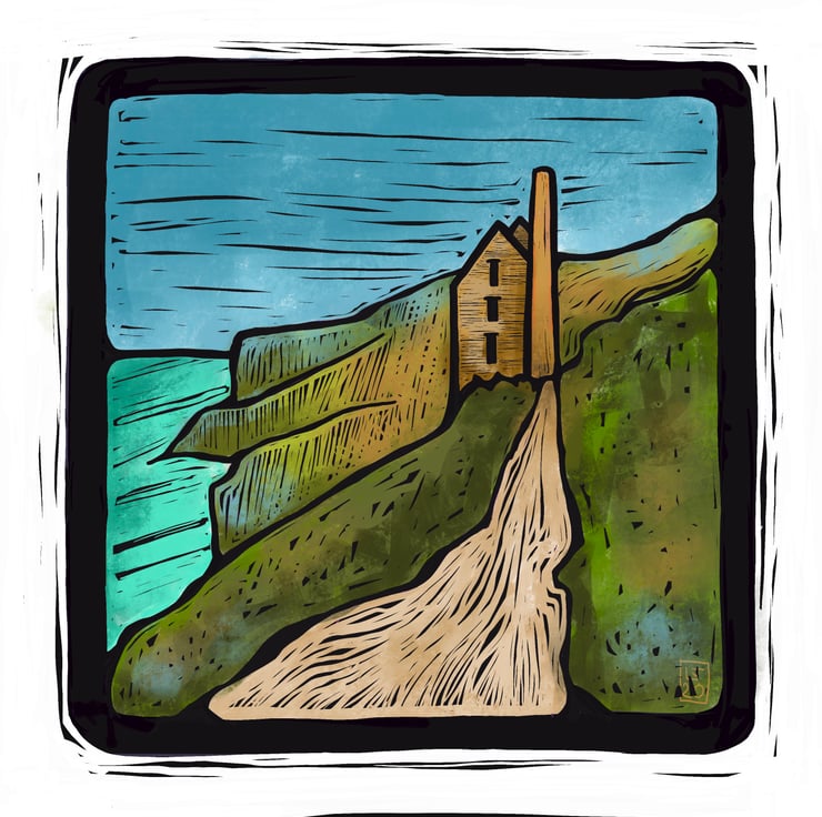 This print is from my “digital Lino”series of Cornish tin mine and landscape series. Inspired by the disused tin mines and engine houses that surround my home here in Cornwall.