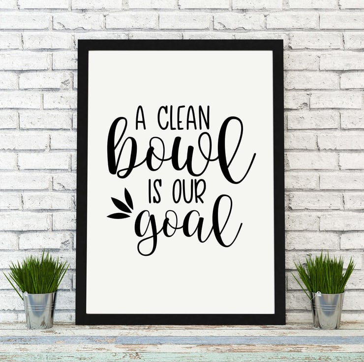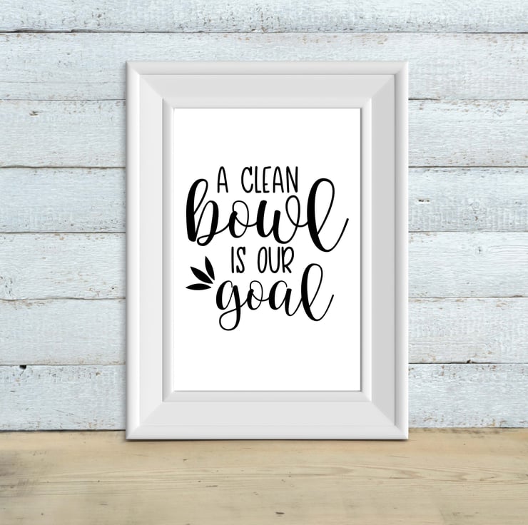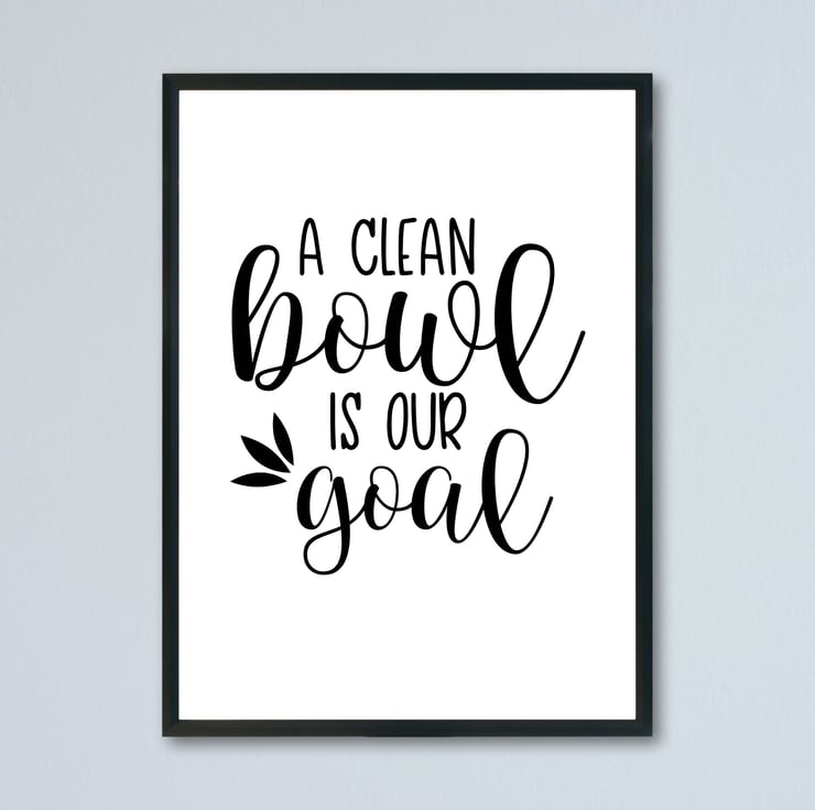 Bathroom quote print, A clean bowl is our goal funny bathroom quote, wall decor