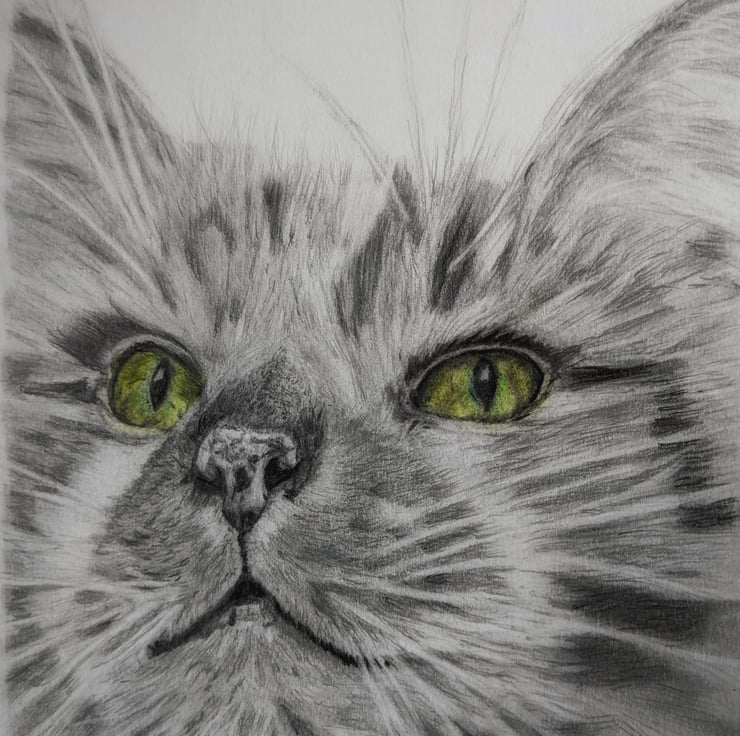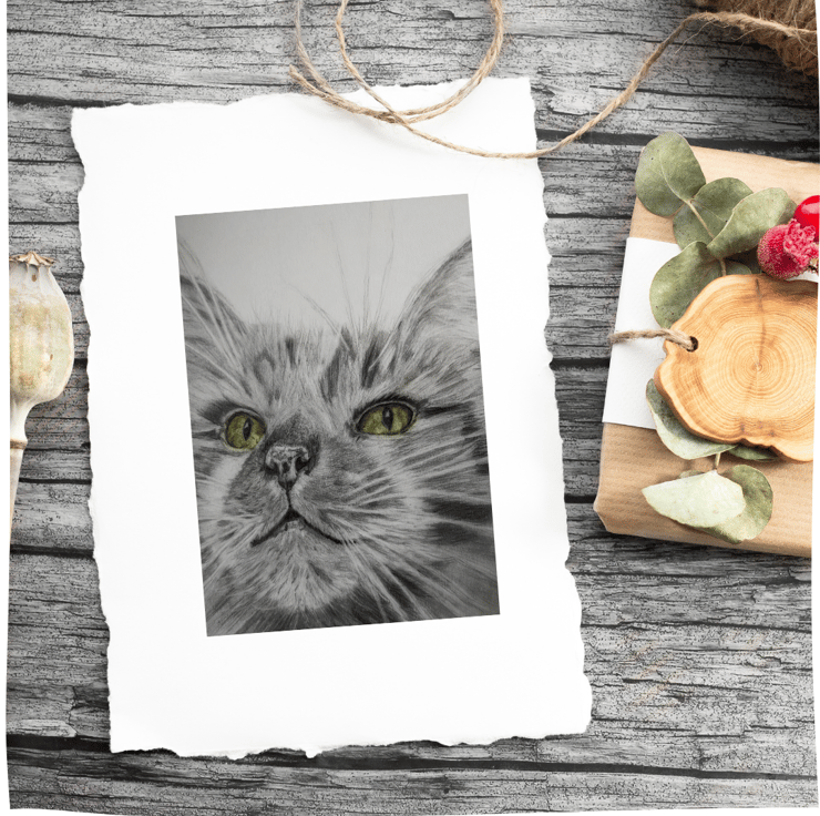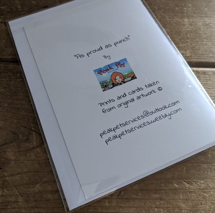 "As Proud as Punch" -A6 greeting card of a fluffy cat, taken from my original pencil artwork. Printed onto luxury silk coated 350gsm card, with white envelope, presented in a clear cello bag.