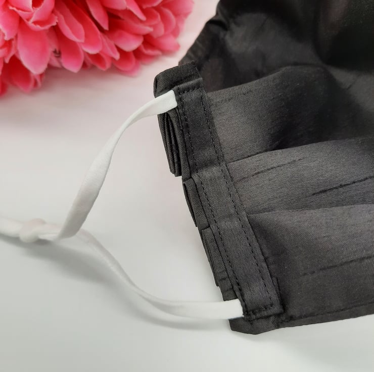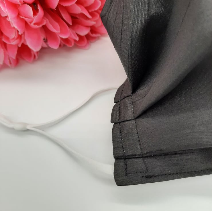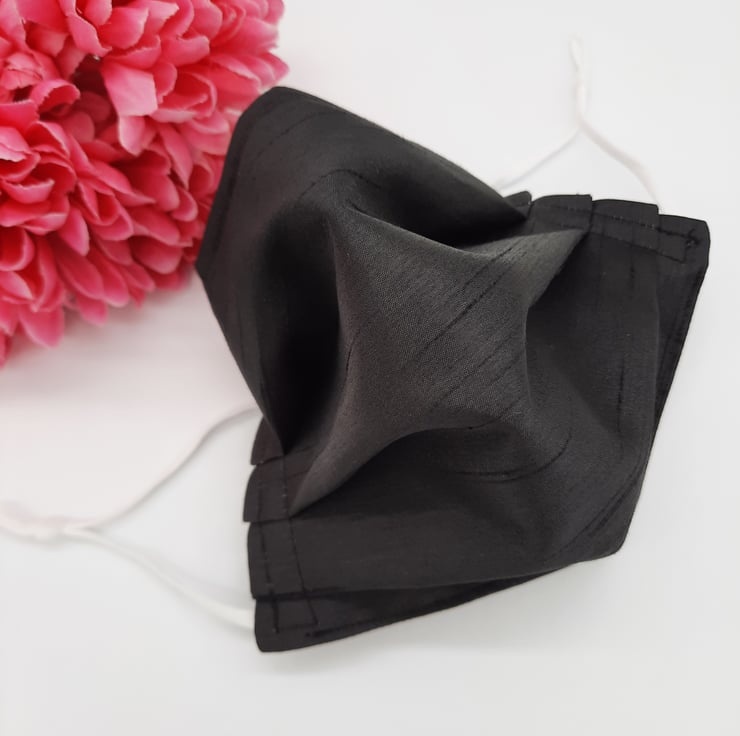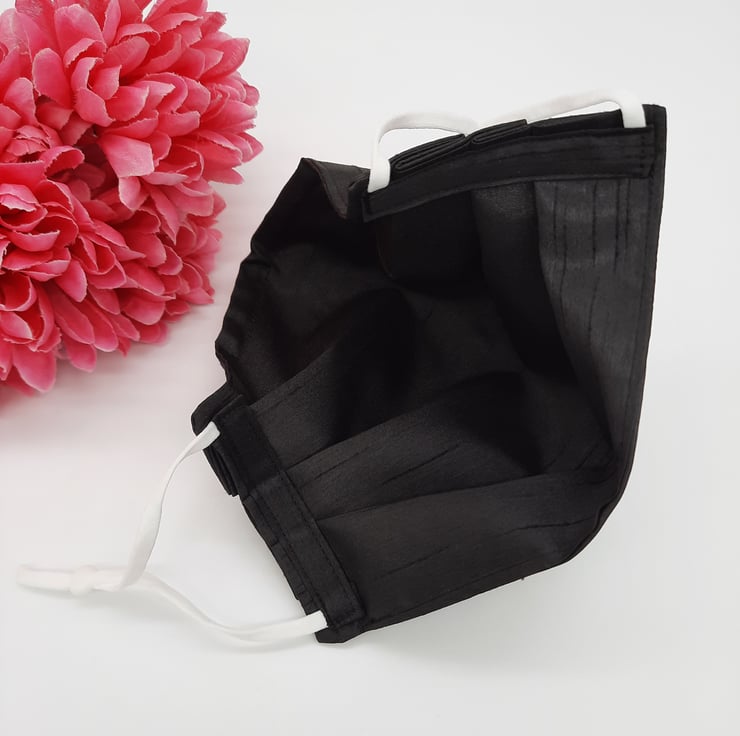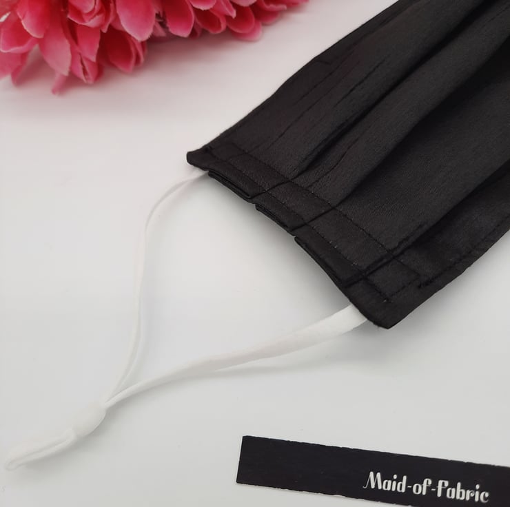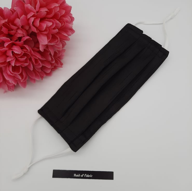 Face mask made using a black fabric, adjustable white elastic and a 9cm flat nose wire.