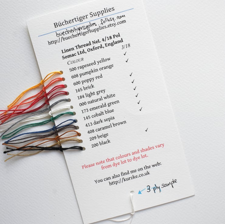 I am selling all coloured linen threads in small pieces. Some amounts are listed and quick to buy, but I am happy to list a custom amount for you. - Just get in touch!