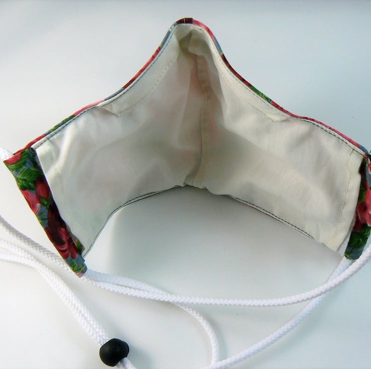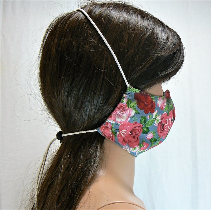 I wanted to make a face mask without having to tie in two places at the back and without elastic around the ears for better comfort for those who like myself wear glasses and hearing aids but please note that if you would like the mask with elastic to go around the ear I can make that version too, just request cord or ear elastic'