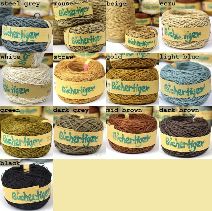These threads are 2-ply and spun from organix Belgian linen in a variety of beautiful natural colours.