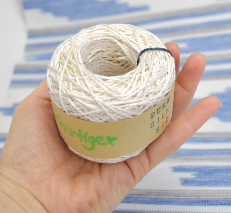This silk here is slightly thicker than Perle 5, and is very suitable for an Asian paper with a cover paper that is thicker than your average Japanese paper, or made from fabric or other thicker material. Also a thicker book would profit from this slightly thicker thread.