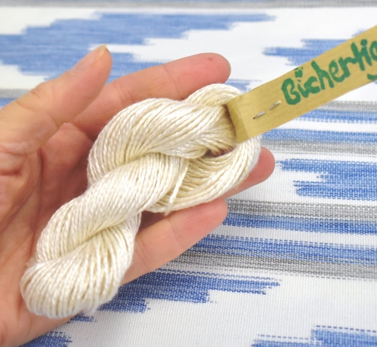 Like all these spun silk threads it is a wonderful material for crochet or knitting, as well as especially lush macramé. It is a lush thread, and could serve everywhere where you are looking for softness combined with strength.