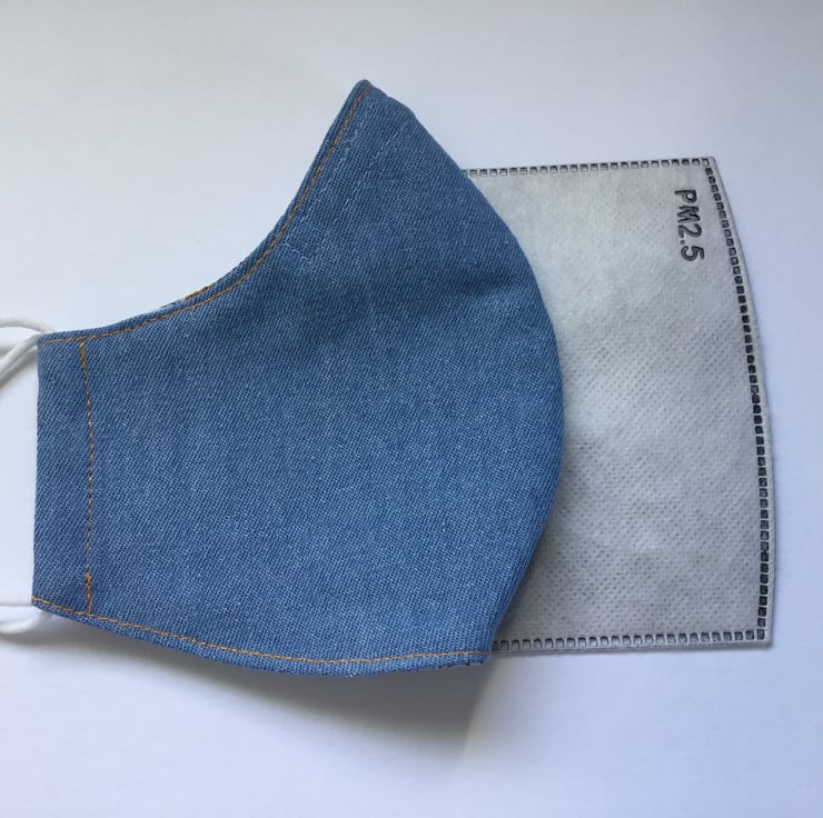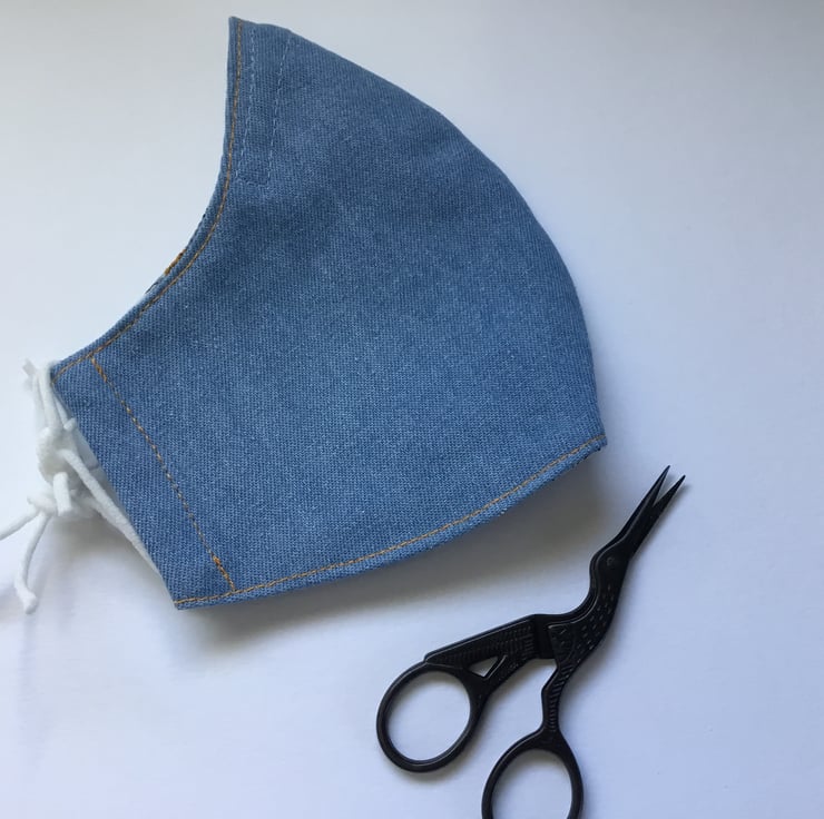 Accessorise your summer denim outfit with a matching denim face covering with a beautifully soft Liberty Tana lawn lining.
