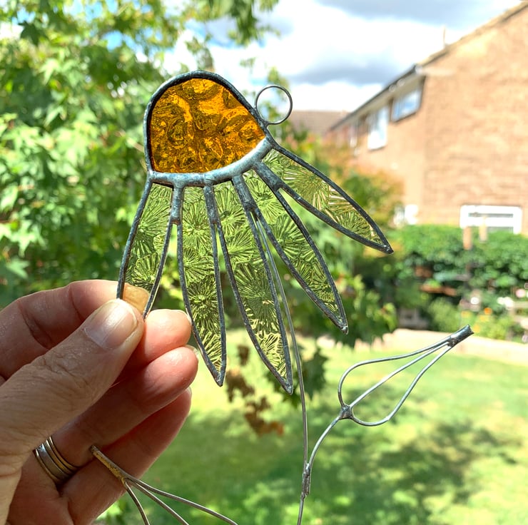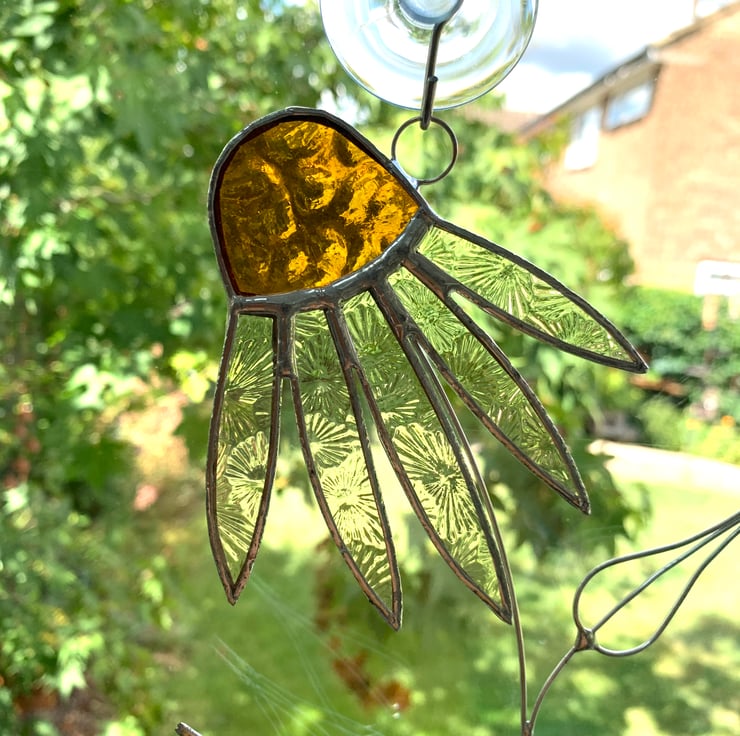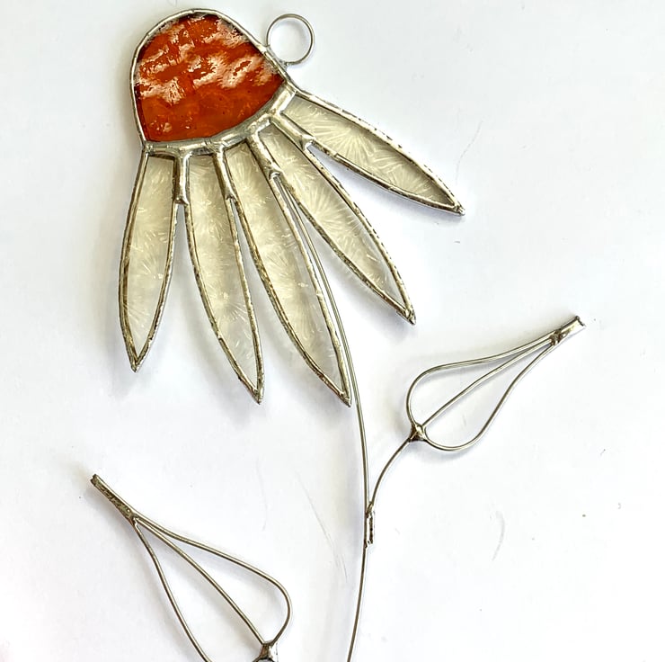 This has been made with pale amber florentine glass for the petals and amber muffle glass for the cone.
