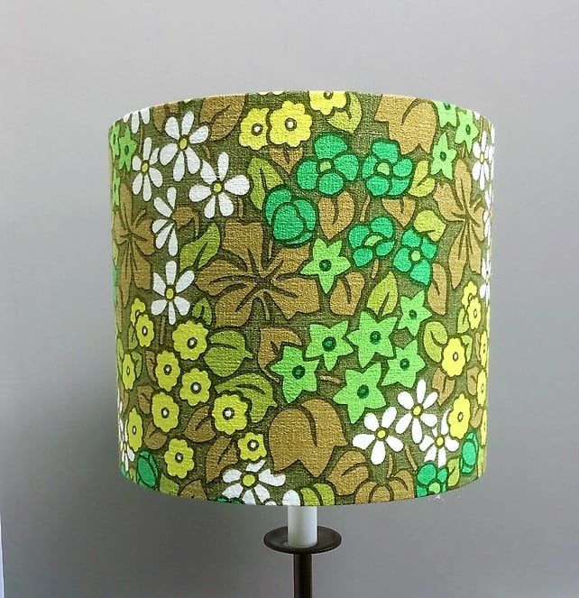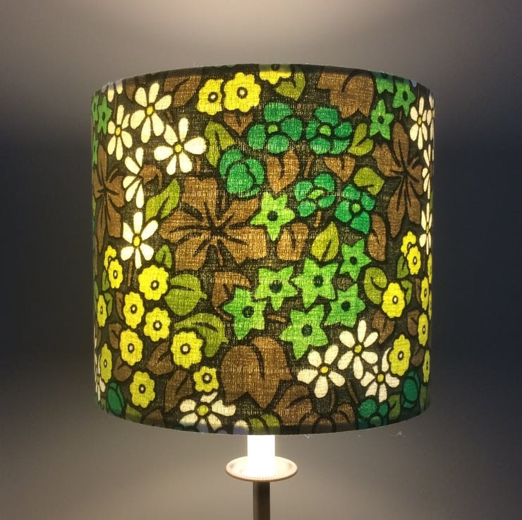 Funky Lemon and Lime Flower 60s 70s vintage fabric Lampshade - A bold feature in either a modern country or retro setting.