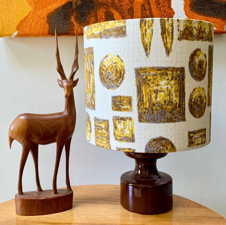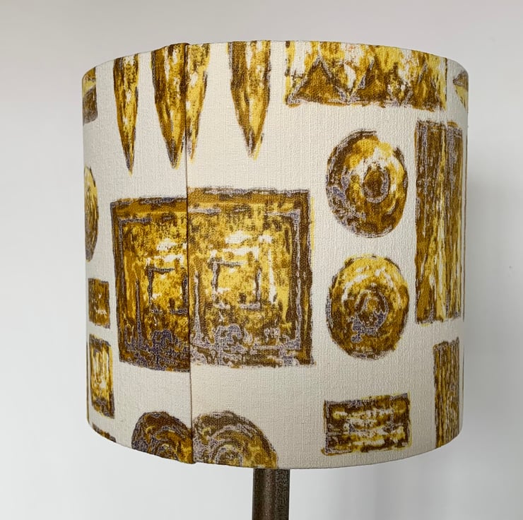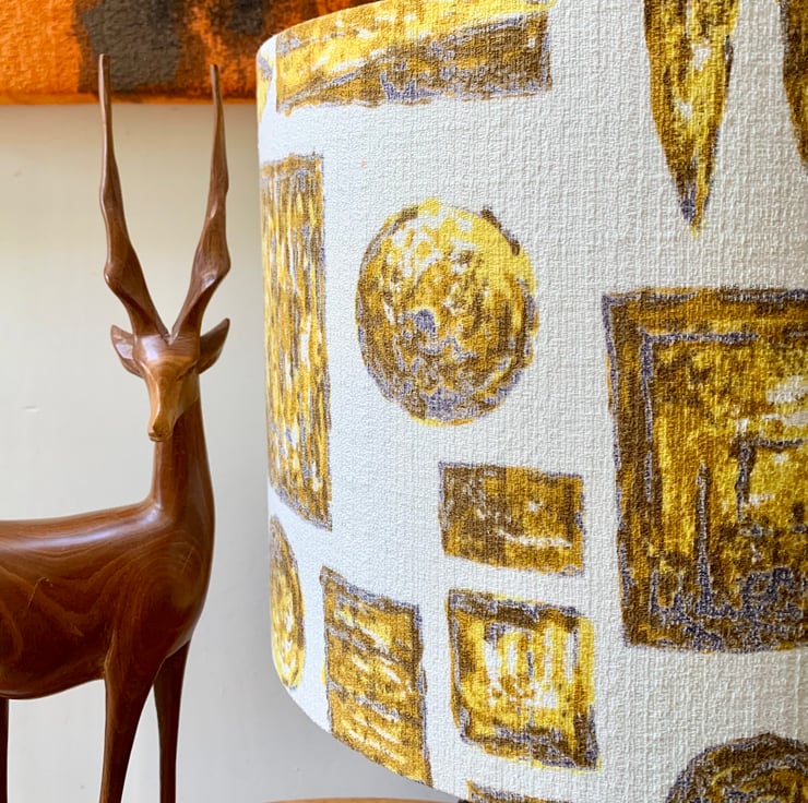 Yellow Rectangles Circles 50s 60s Barkcloth vintage fabric Lampshade option - A bold feature in either a modern or retro setting. Fabric is in good condition.