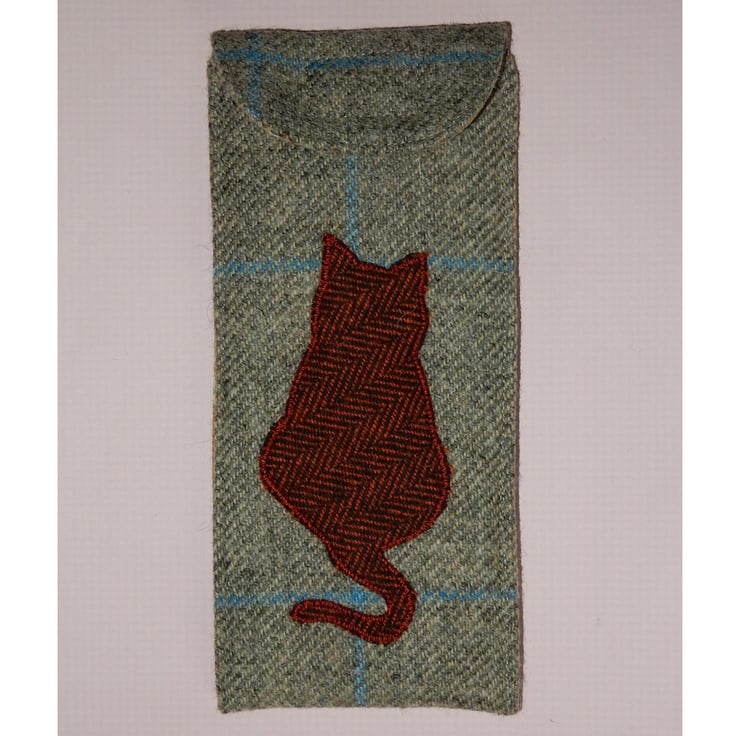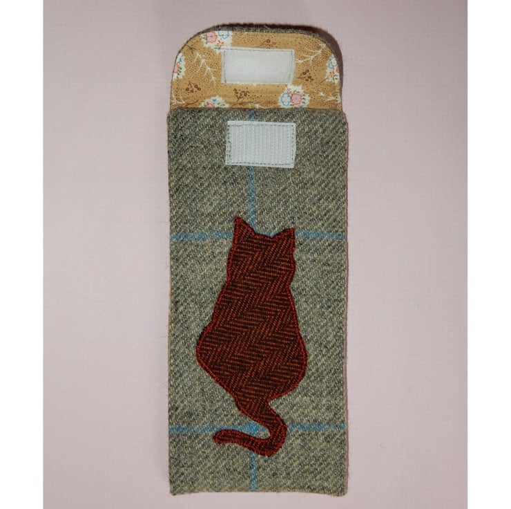 A nice soft glasses case is very useful, but it can also bring a touch of luxury, made from woollen tweed with the addition of a tweed ginger cat. The case is lined in a toning cotton print fabric, and has a layer of wadding for added protection for your glasses or sunglasses. It fastens with Velcro, and measures approximately 3 x 7 inches.