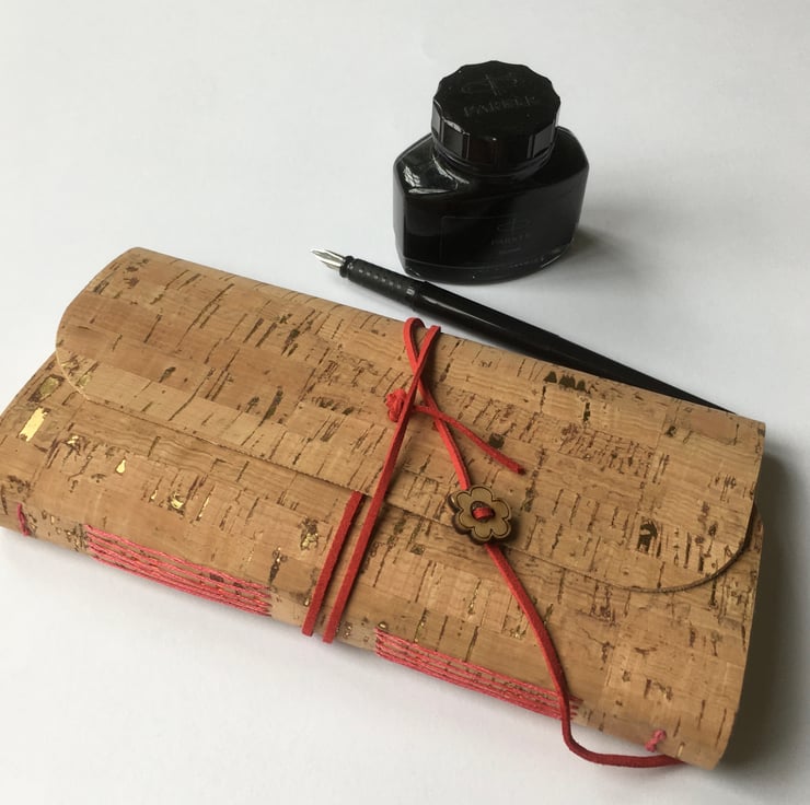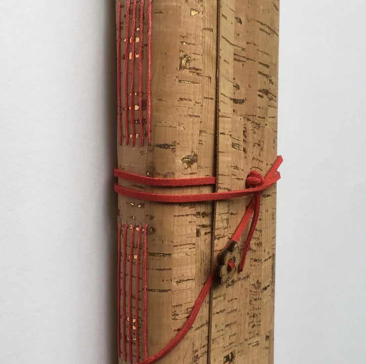 Cork material is lovely to work with and makes, I think, a very nice alternative to leather for this type of soft wraparound book.