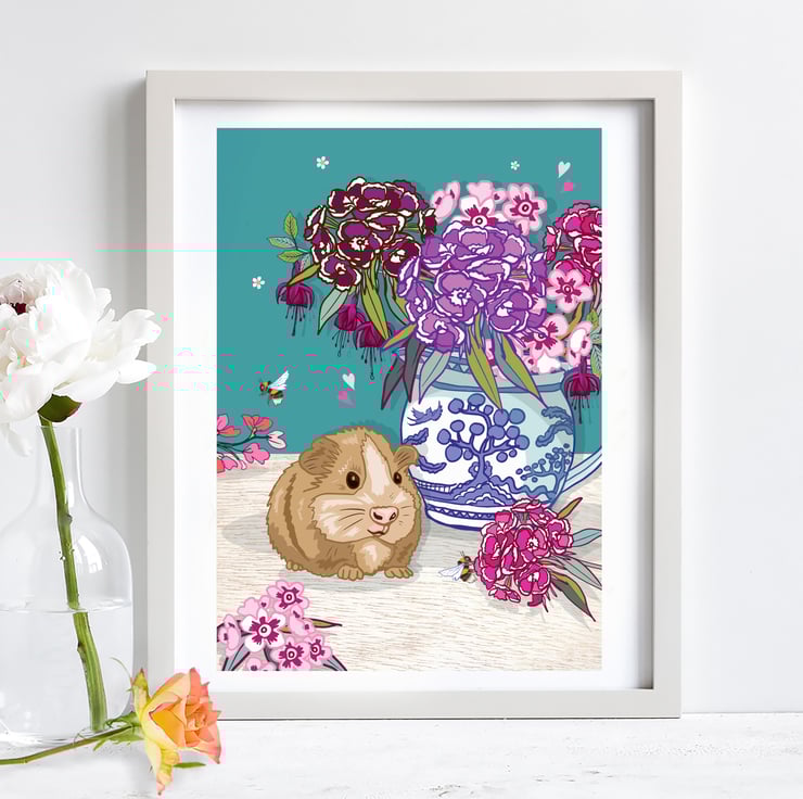 An A4 (290 x 210mm) unframed print of my original illustration. This image was originally created as a pen line drawing which was then scanned and coloured digitally. Its printed onto a high quality archival 192gsm paper with a rich matte finish. Printed with archival quality inks. The image area is centred and will fit within 10x8" standard frame when trimmed.