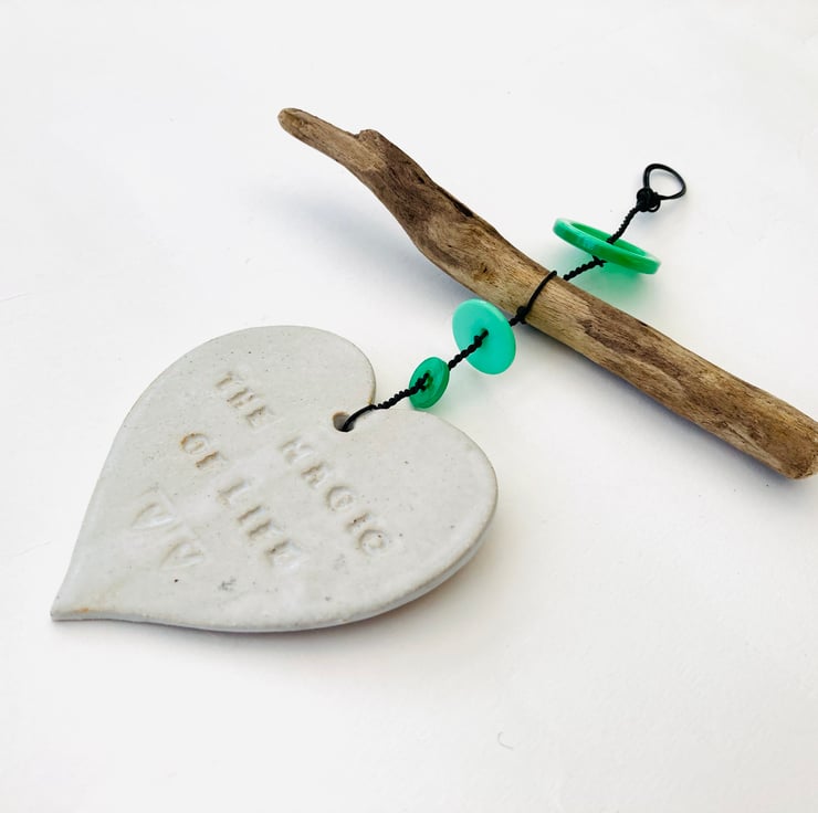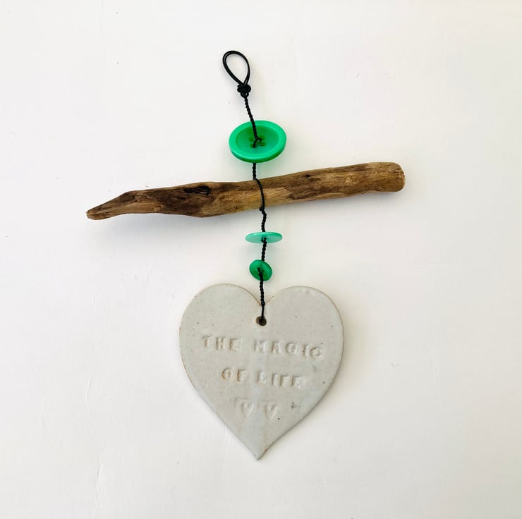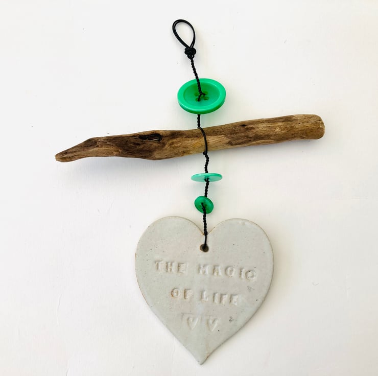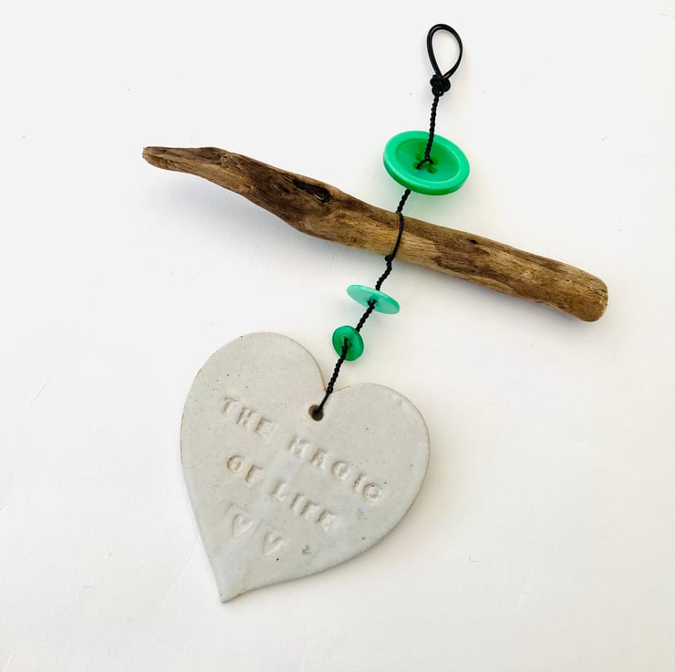 Driftwood wall hanger, This pretty Driftwood, Love heart hanger is made using a black wire, clay, driftwood and some cute buttons to create a beautiful one off design.