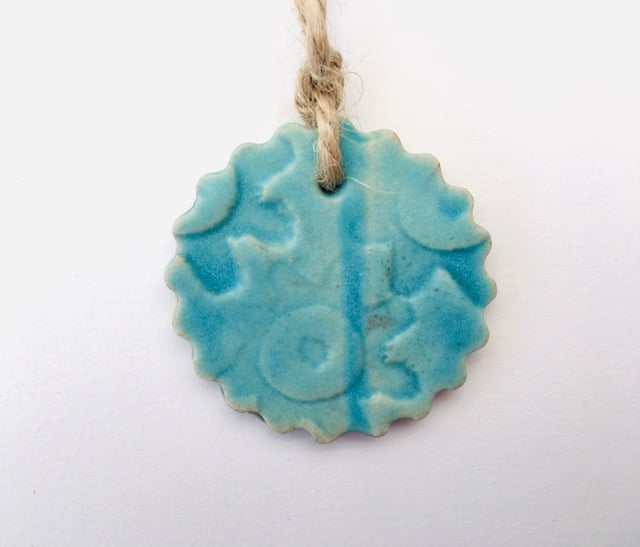 It is fired, glazed with a turquoise stoneware glaze colour and fired again to high temperatures.