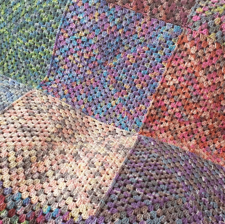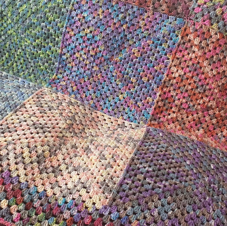 It measures 48x48 inches square, is 100% acrylic, machine washable and can be dried on low heat, though air dries really quickly too.