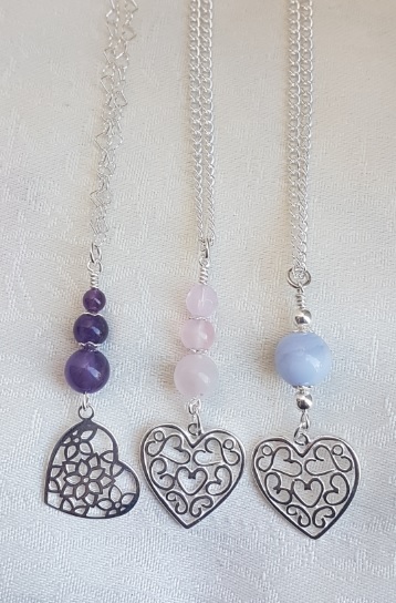 Gorgeous Blue Lace Agate Bead and Heart Charm Necklace. A lovely pale blue gemstone bead and a gorgeous heart charm make this a fabulous necklace. An ideal gift for those who love Blue Lace Agate/Sterling Silver jewellery.