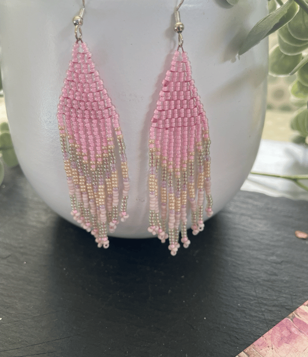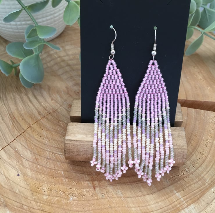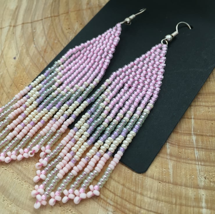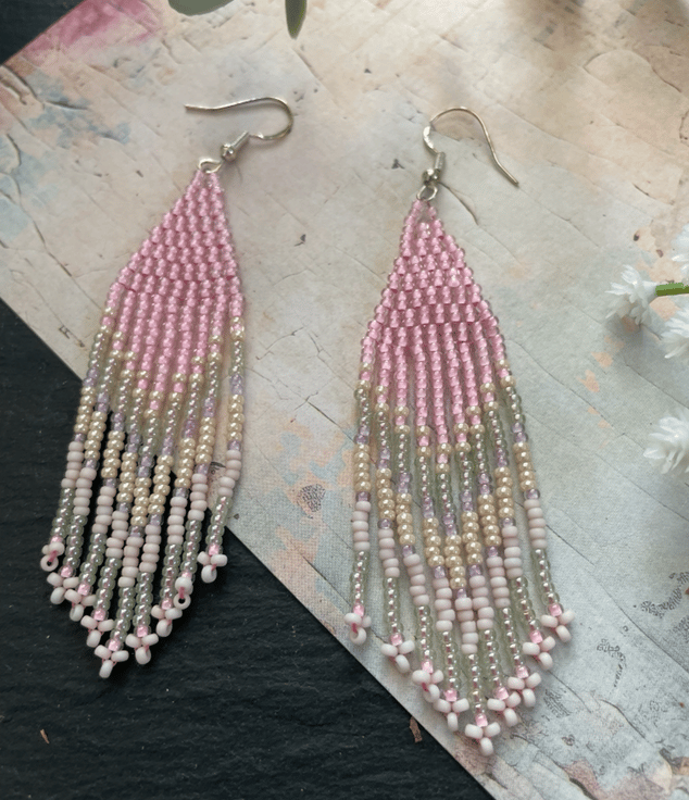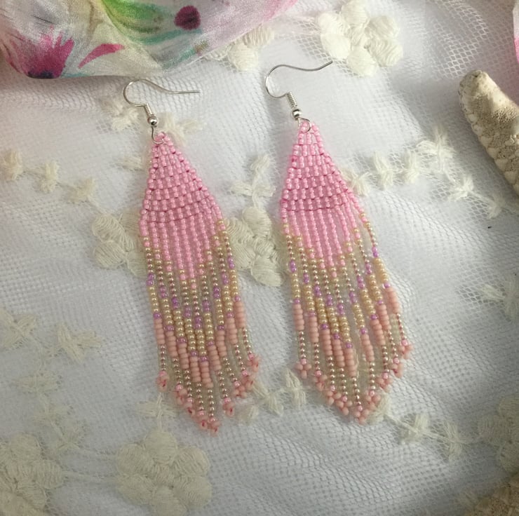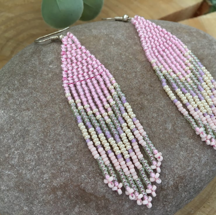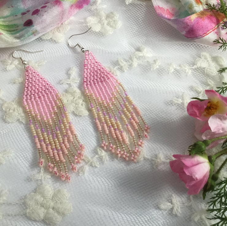 Beautiful Spring Petal beaded fringe earrings inspired by the colours of blossom in the Springtime.