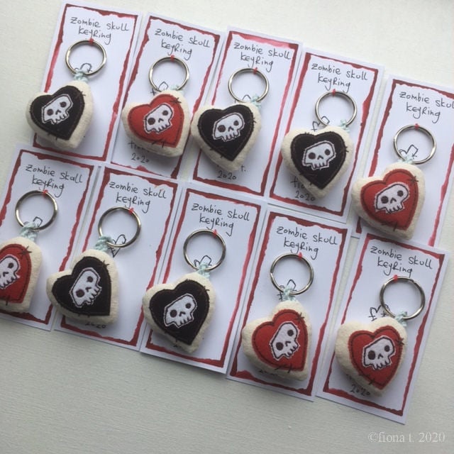 these squishy skull hearts measure about 4cm, (approx. 7cm including hanging loop and split ring).