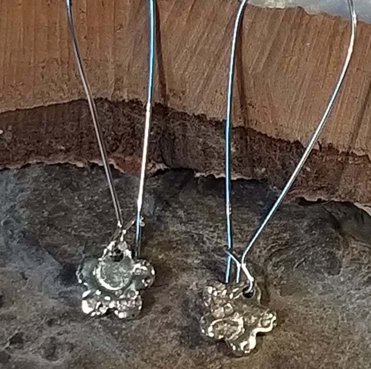 Fine Silver textured flower on Sterling Silver Giant Kidney Earwires.