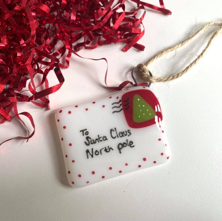 This Fused Glass Letter to Santa is a perfect addition to your Chirstmas tree this year.