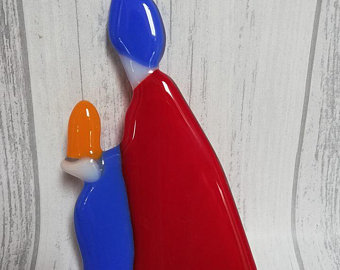 This hand cut fused glass nativity scene/set includes, Baby Jesus, Mary, Joseph, 3 Wise Men, Sheppard, Star and Hut. All of these items are freestanding in this recycled wood block that has 3 groves in it for them to stand in. This is a perfect forever addition to your family Christmas, will always be remembered standing on your mantlepiece.