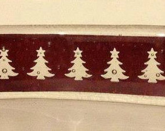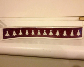 This Fused Glass Wave has an inclusion of Copper sheet with Christmas Trees cut out of it. The copper goes this lovely red colour once its been in the kiln. Will look pretty on your fire place this Christmas.