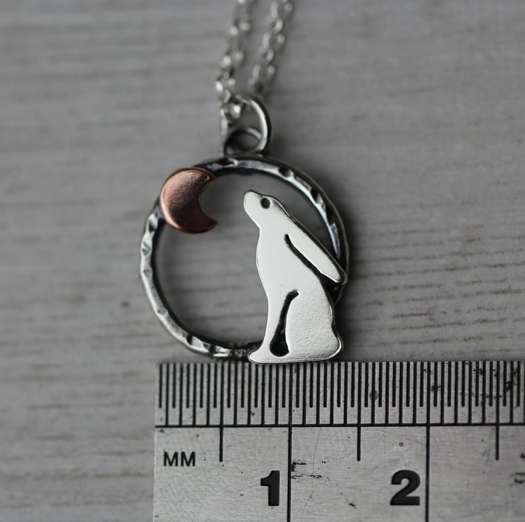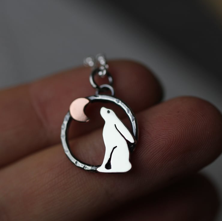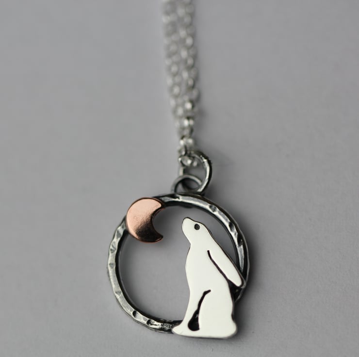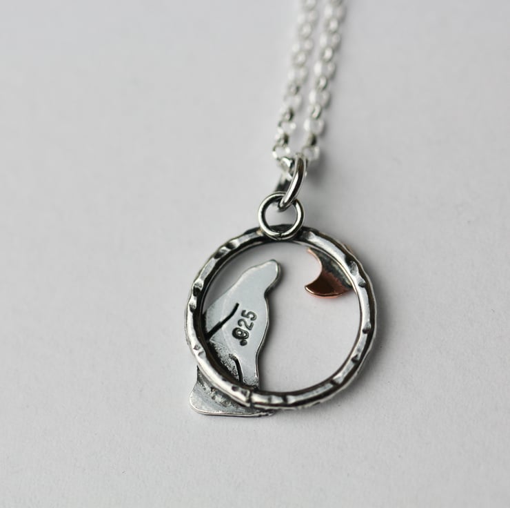 Handcrafted from recycled sterling silver with copper moon.