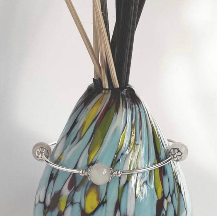 The jewellery moves comfortably around the wrist and is fastened with a bolt clasp.