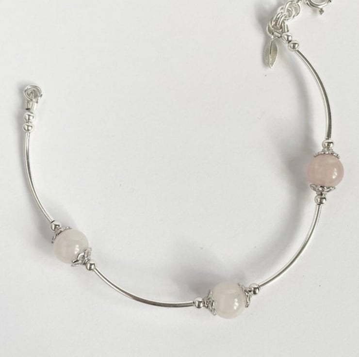 The lovely gemstone Rose Quartz is dusky pink In colour.