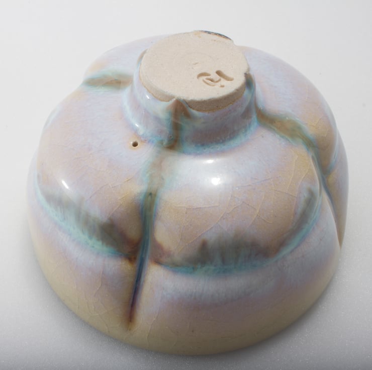 The piece has a small pin hole in the base. This allowed air to escape during the drying and firing processes to stop the piece exploding.